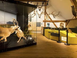 Zu den besonderen Exponaten zählen unter anderem europaweit einmalige Tierpräparate – darunter zwei Hirsche im Brunftkampf –, restaurierte Dachse und Waschbären sowie ein präparierter Seeadler. Das Museum bietet interaktive Erlebnisse für alle Altersgruppen: Audiostationen mit Waldgeräuschen, Tierlauten, Maschinenklängen und einem Jägerschuss sowie Medienstationen mit Interviews von Menschen, die eng mit der Waldarbeit verbunden sind, machen den Besuch zu einem Erlebnis für die ganze Familie.